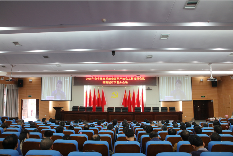 4月4日,全省教育系统全面从严治党视频会议在长沙召开。我校在家的校领导、副处以上干部,人事处等部分二级单位的科级干部共154人在图书馆报告厅收听收看会议。