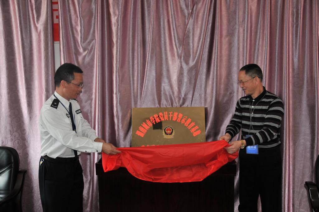 随后,党委书记赵运林和监狱长梁伟新共同为“湖南城市学院党员干部警示教育基地”揭幕。
