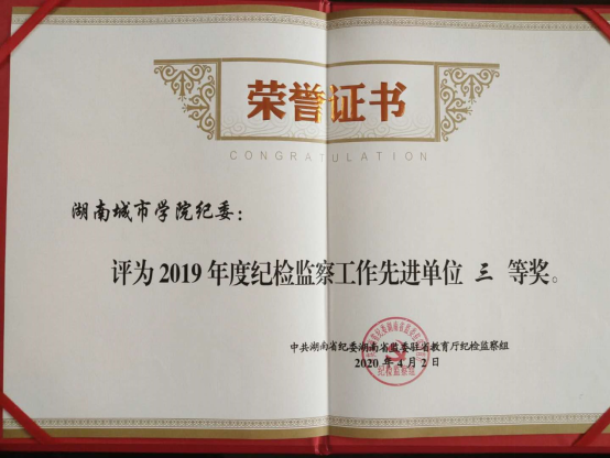 近日,省纪委省监委驻省教育厅纪检监察组发文,湖南城市学院纪委获评全省高校2019年度纪检监察工作先进单位(三等奖)。另外,李鑫同志被评为2019年度执纪审查先进个人。